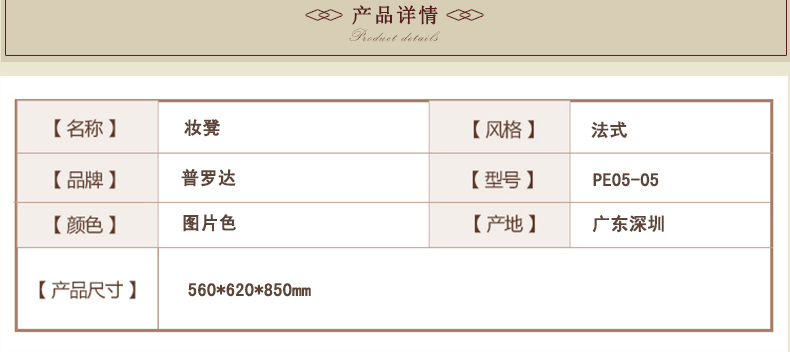 普罗达秋韵金栗系列梳化妆凳简约法式布艺实木梳妆台椅子美甲凳子田园卧室换鞋凳PE05-05