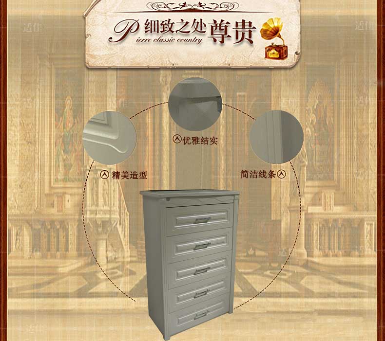 简欧新款米兰时尚卧室斗柜简欧风格储物柜S02D5 翻镜五斗柜