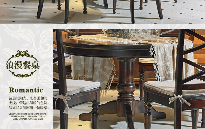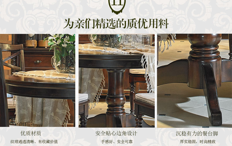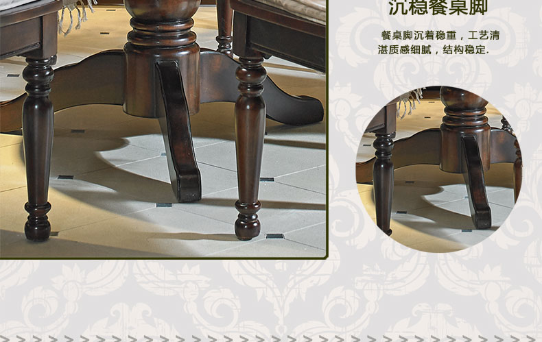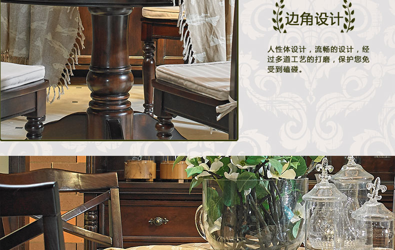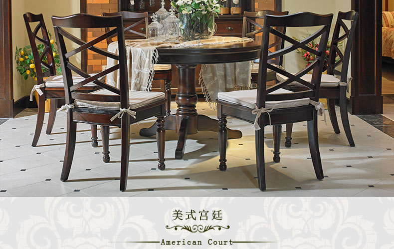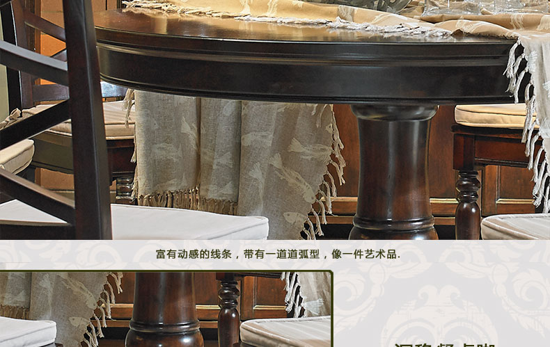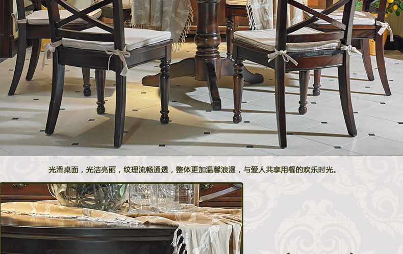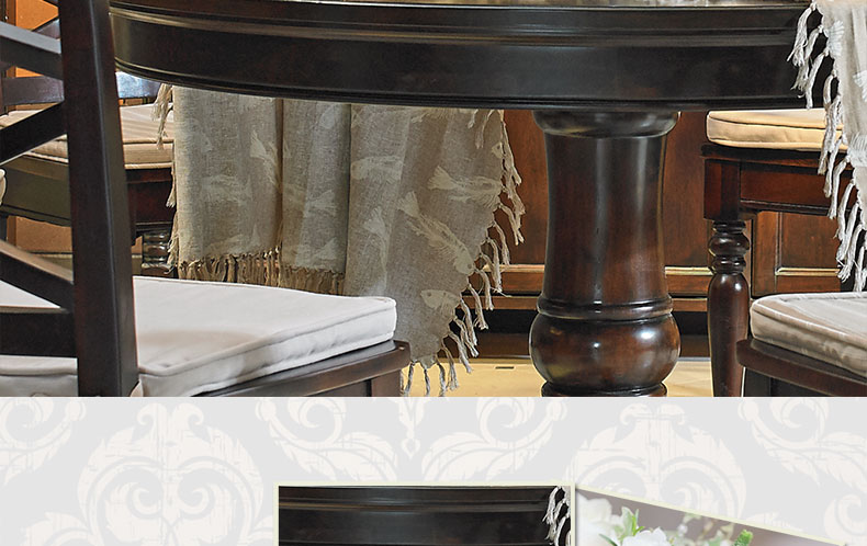 简欧名仕简美系列餐厅仿古圆餐桌多人用餐桌美式焦糖深咖色餐台HCT02