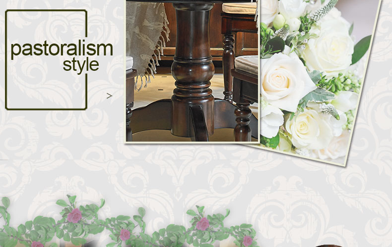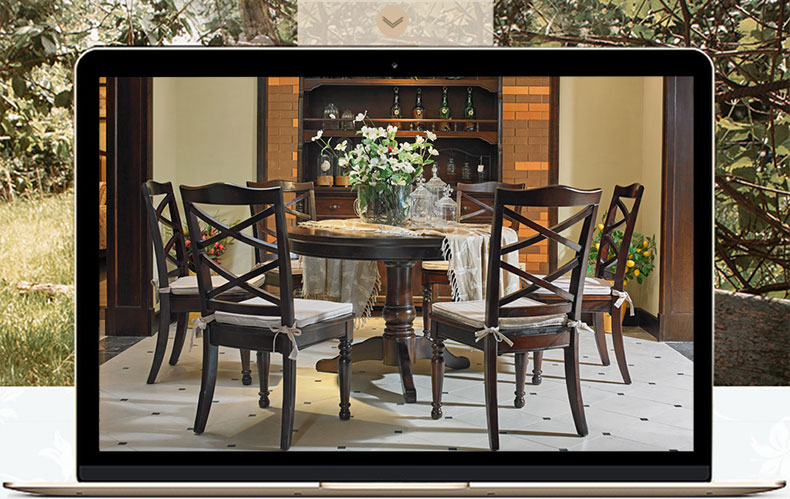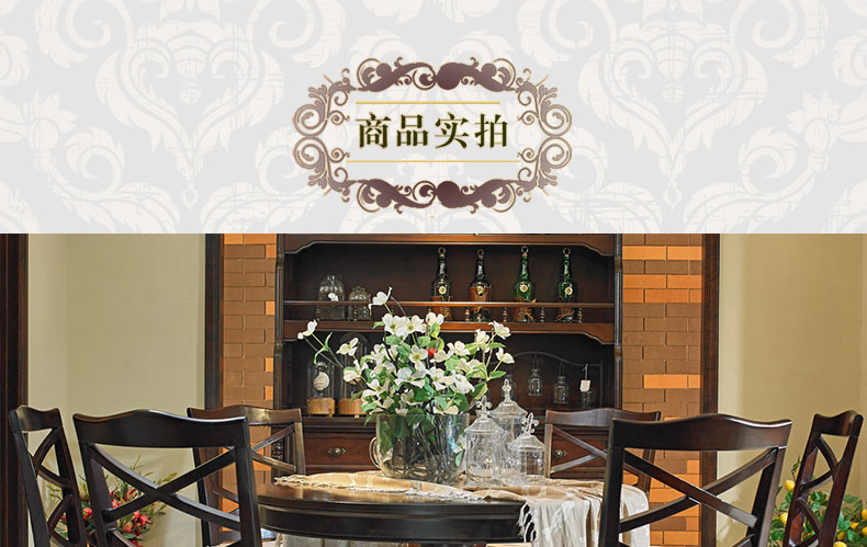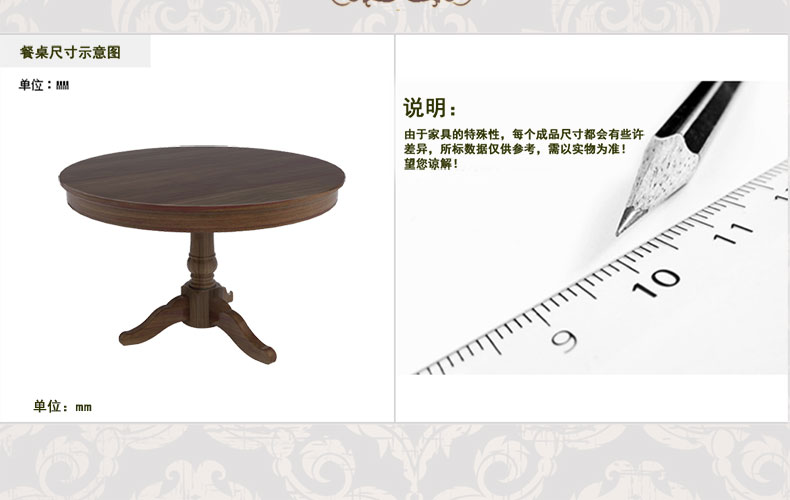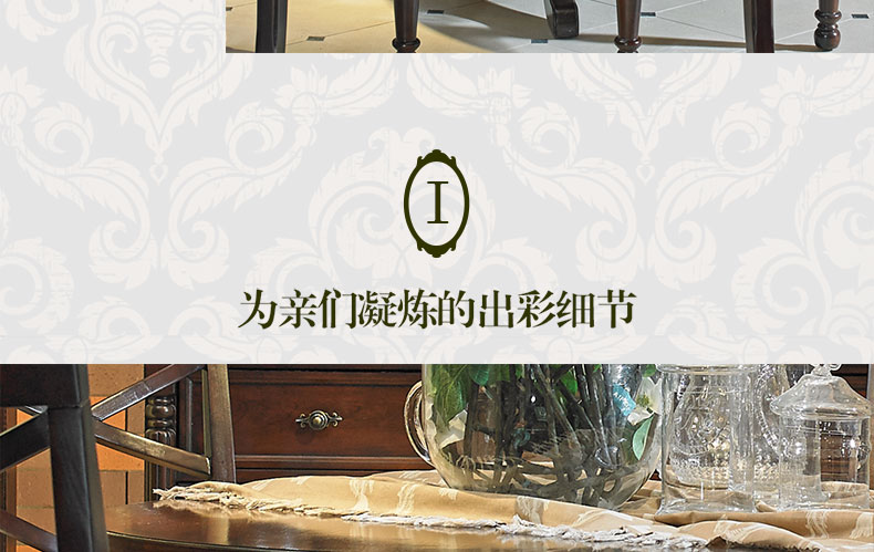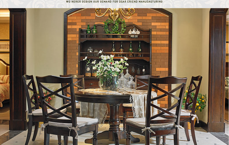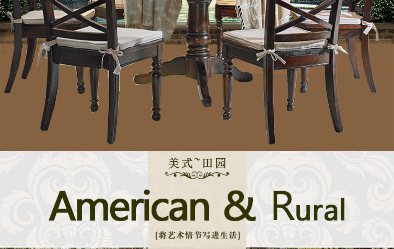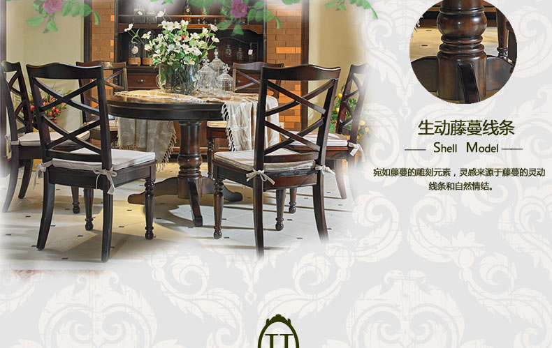 简欧名仕简美系列餐厅仿古圆餐桌多人用餐桌美式焦糖深咖色餐台HCT02