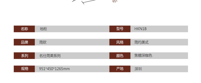 简欧名仕简美系列客厅焦糖深咖色边柜储物柜收纳柜HKN1B两门边柜