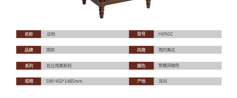 简欧名仕简美系列经典储物装饰柜客厅必备收纳组合边柜HKN1C单门边柜