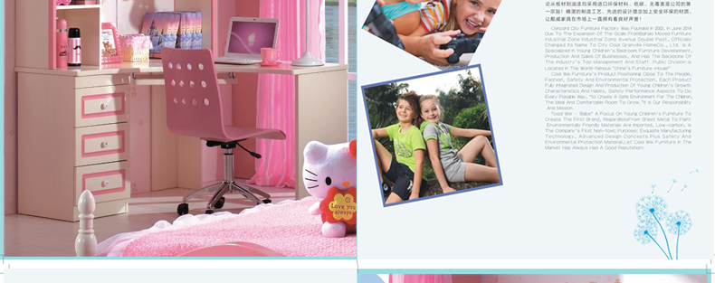 产品定位亲民、时尚、安全环保,每一款产品的设计和生产充分结合青少年儿童的成长特点和生活习惯,安全性能方面做到无微不至,“为孩子创造安全环保,理想舒适的成长空间”是我们的责任和使命。