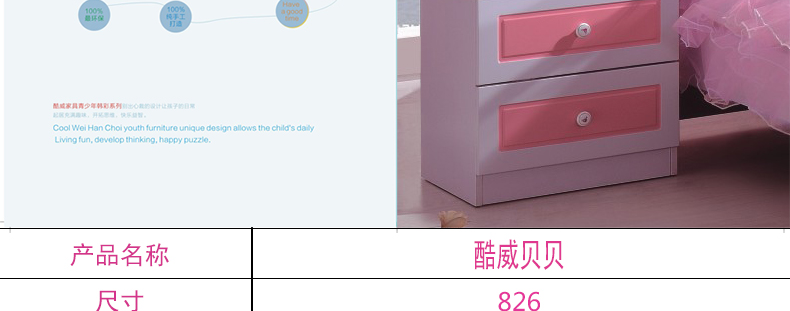 酷威贝贝卧室高档创意大容量储物床头柜儿童经典必备床头柜826