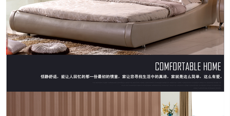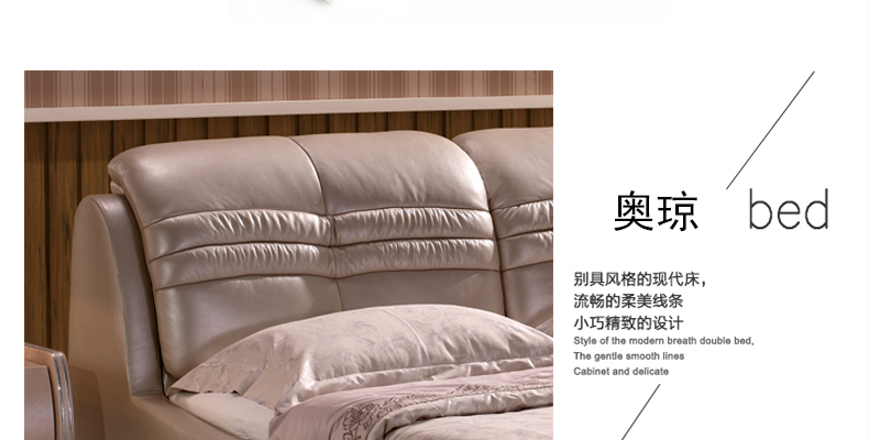 奥琼卧室高品质现代风格1.8米双人床舒适经典皮艺大床8813