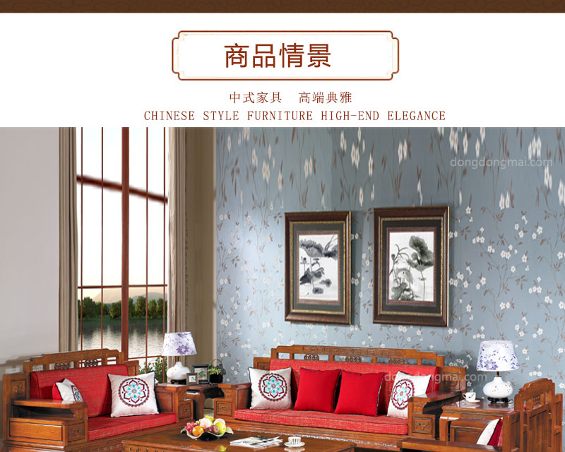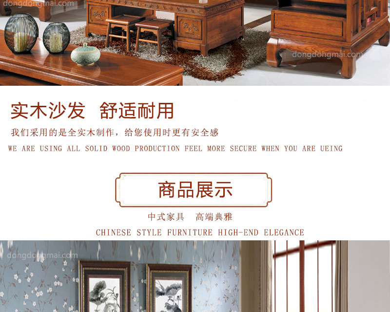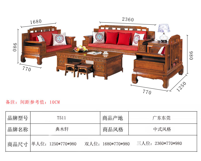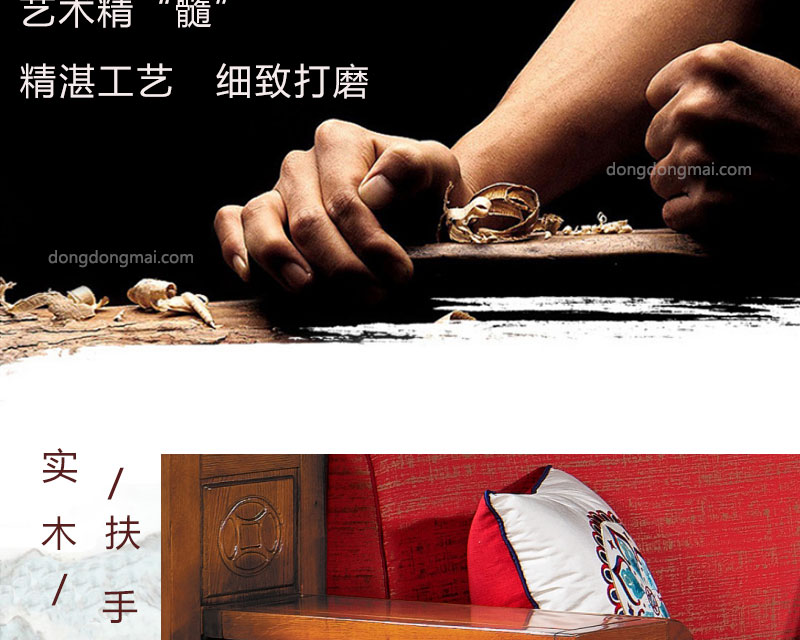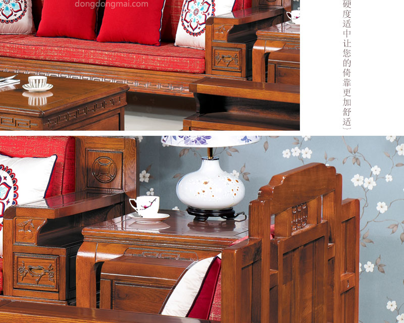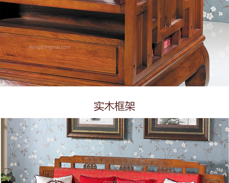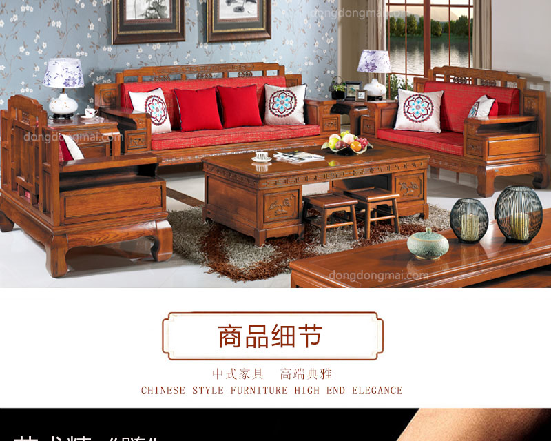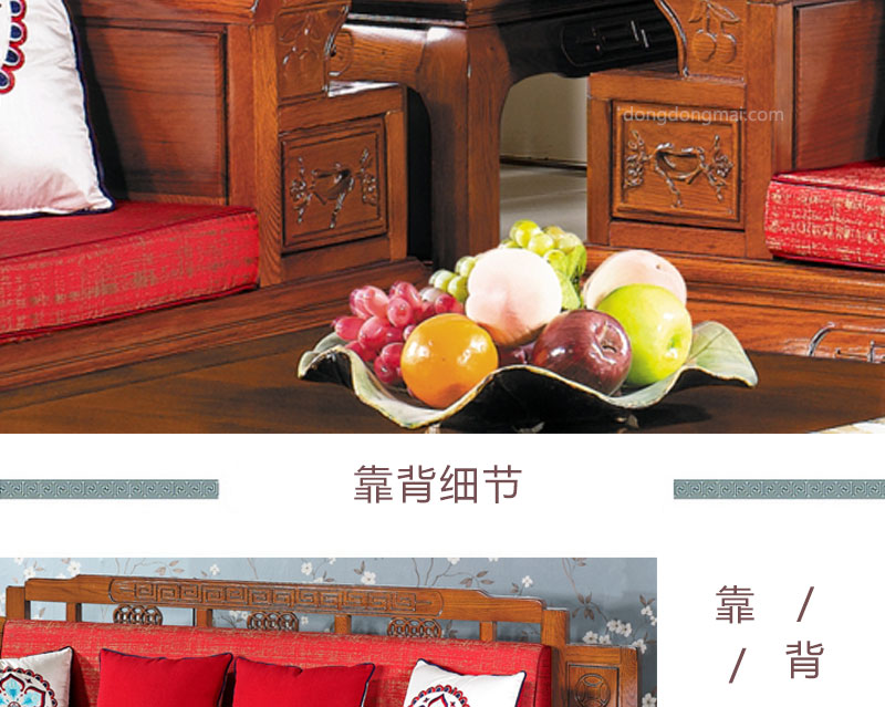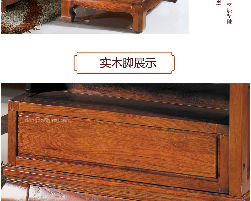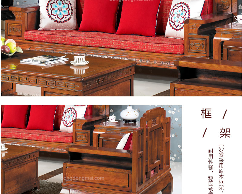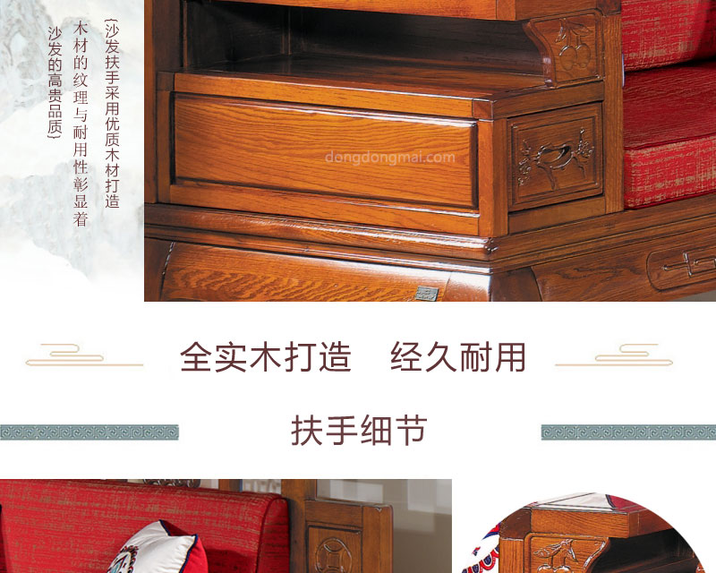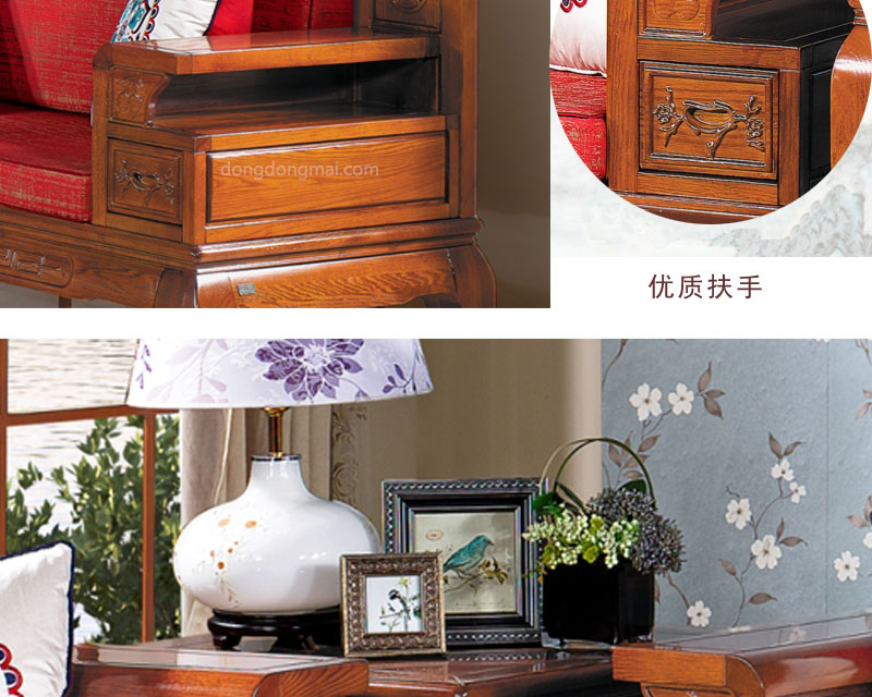 【典木轩】中式风格 典藏橡木 手工雕饰 中国风布艺搭配 储物抽屉实木沙发(1+2+3)型号:T511