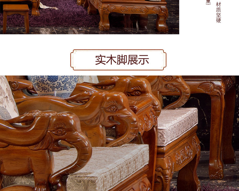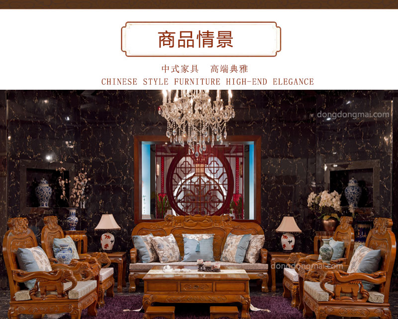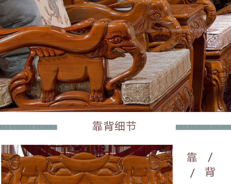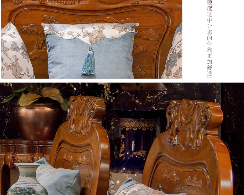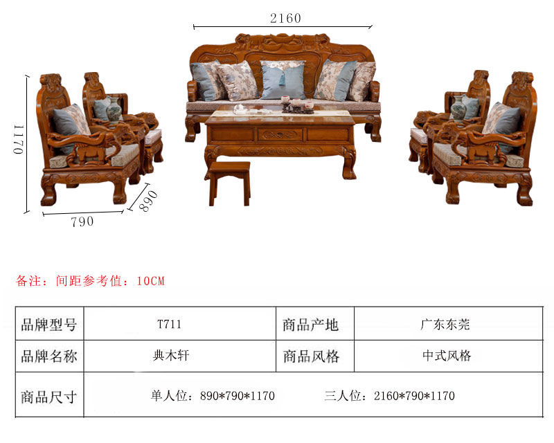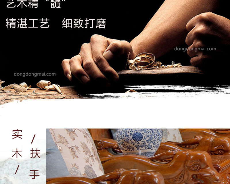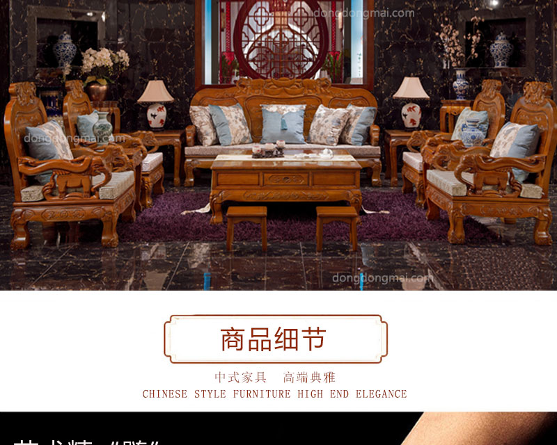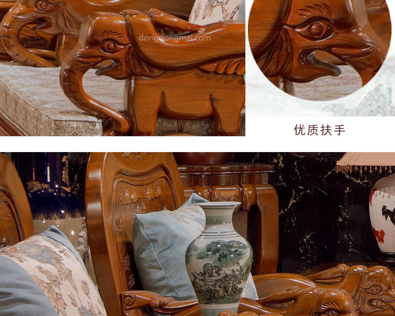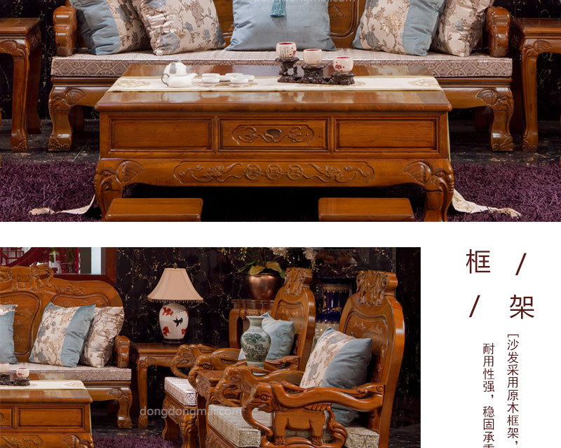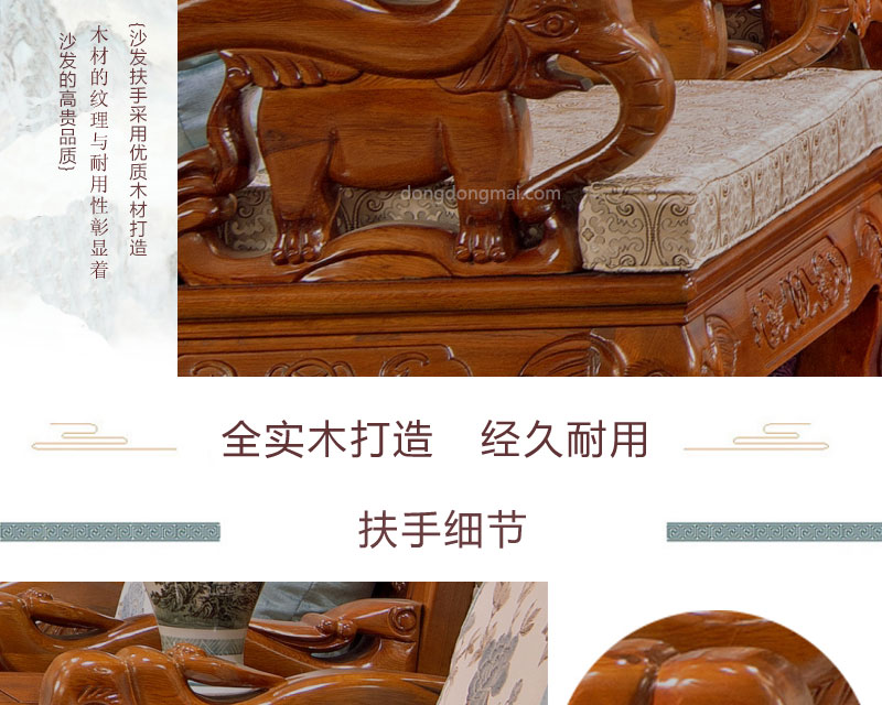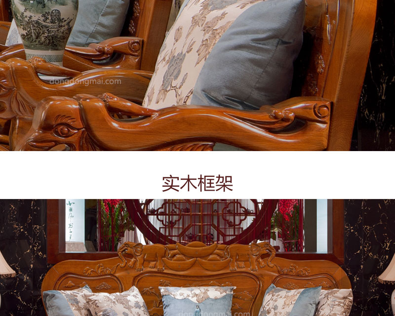 【典木轩】中式风格 典藏橡木 纯手工精美雕饰 百搭布艺搭配 实木沙发(1+2+3)型号:T711