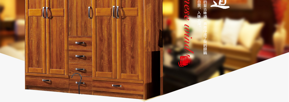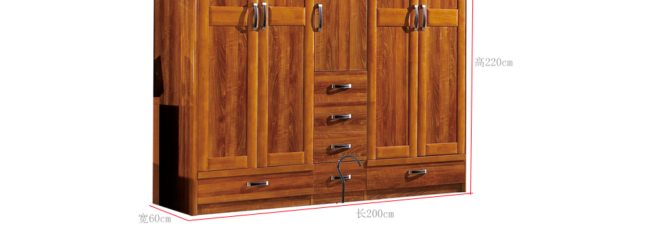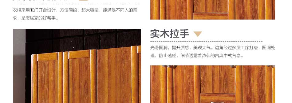 达人居 老橡木衣柜储物柜简约现代中式卧室家具衣柜五门6d12