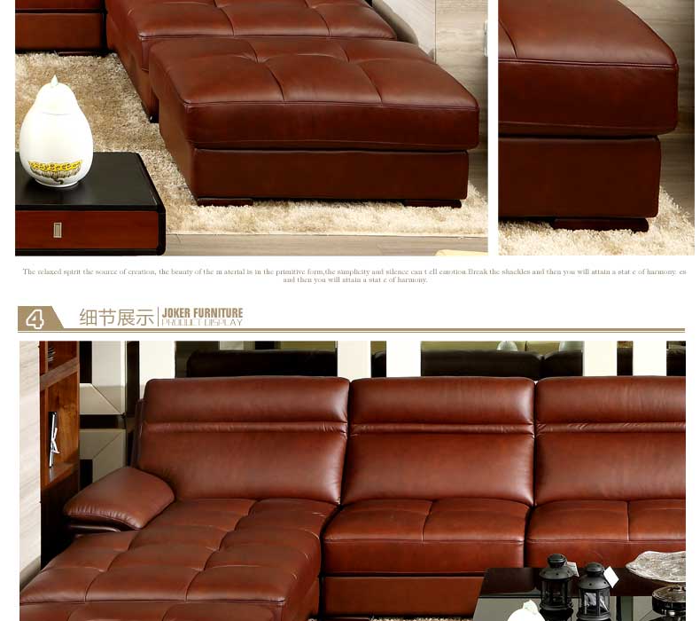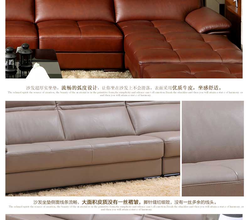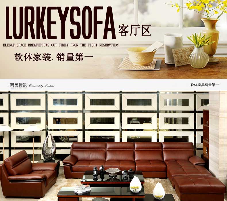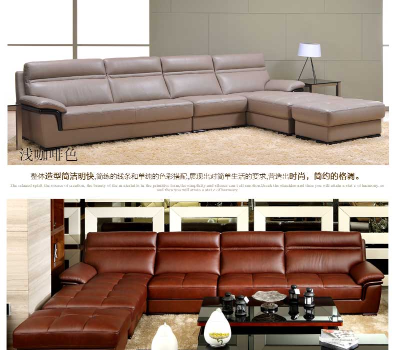 乐其真皮沙发 皮沙发 皮艺沙发客厅组合转角简约现代 皮沙发LK379