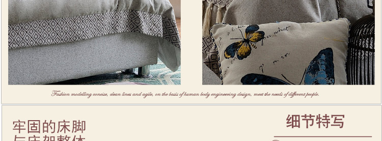 法依兰 高等布料自带软靠时尚舒适淡雅色彩布艺床827