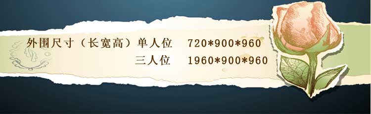 外围尺寸单位mm(长宽高) 单人位 720*900*960 三人位 1960*900*960 进口油腊+棉麻布