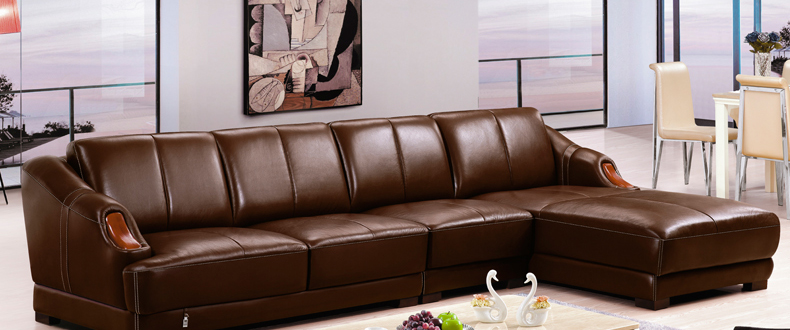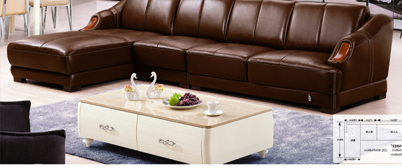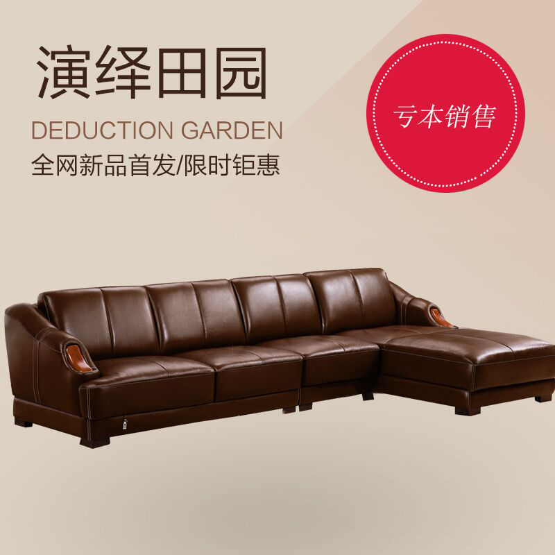 美多邦真皮沙发 实木头层牛皮 奢华客厅L型转角皮艺沙发组合8911