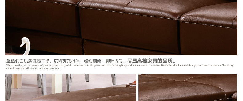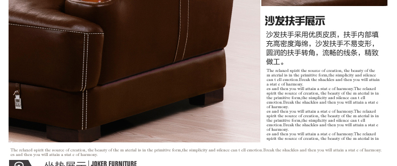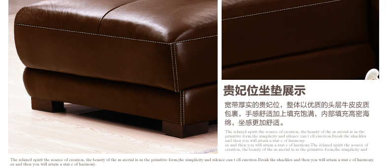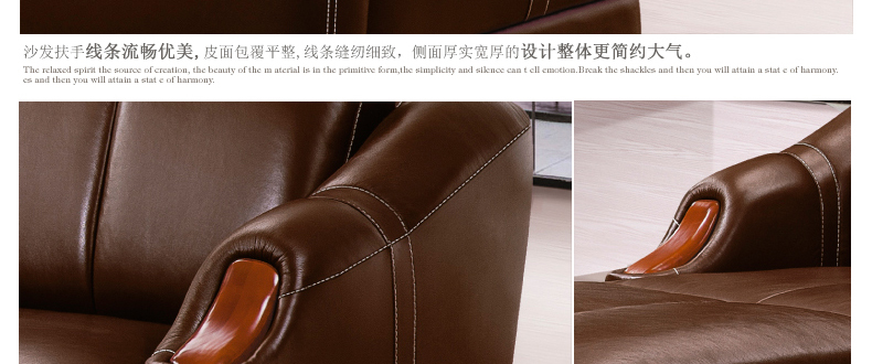 沙发真皮部分采用头层真皮,质感一流,韧性十足;木材采用全实木精心雕刻,让家成为心灵的港湾,店长推荐