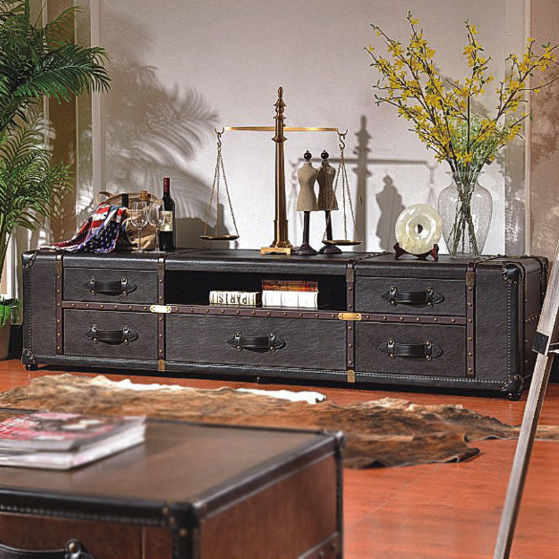 DH美式乡村复古真皮电视柜 别墅高档家具箱式DG805