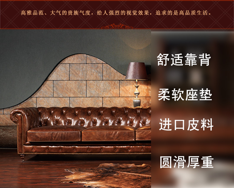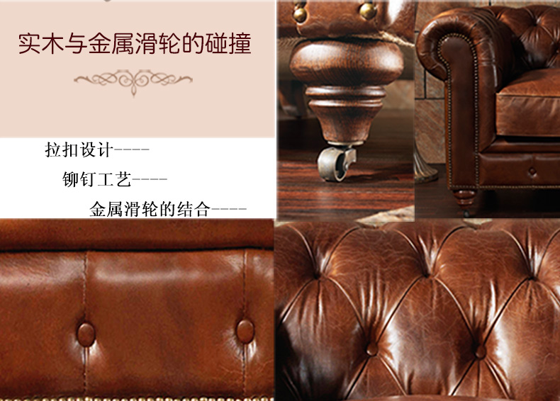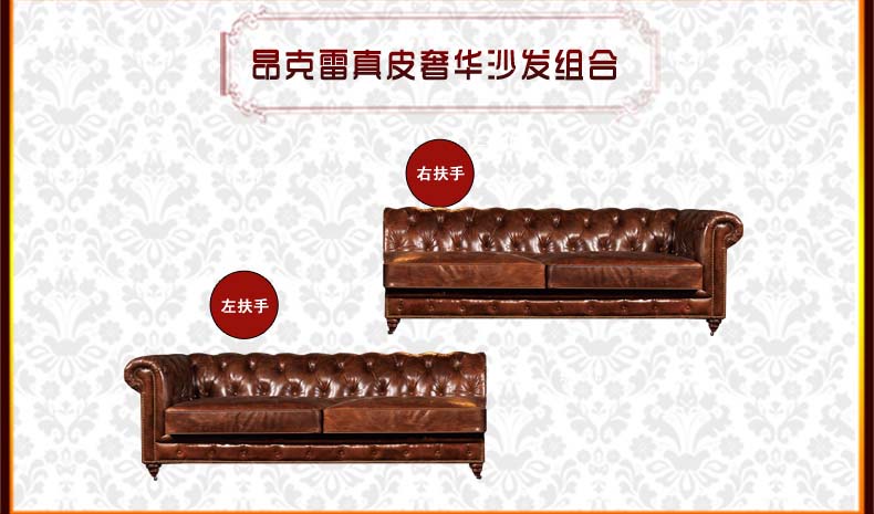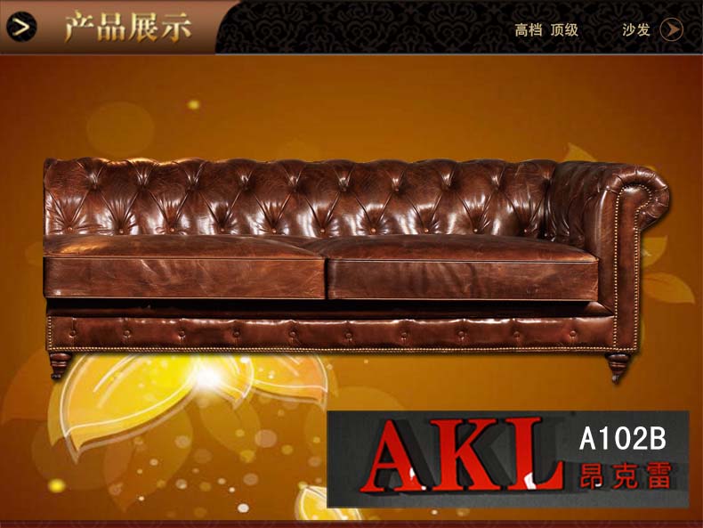 昂克雷 美式新款沙发实木框架真皮沙发转位沙发厂家直销A102B