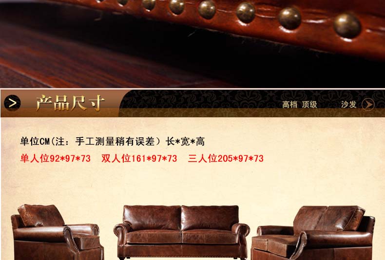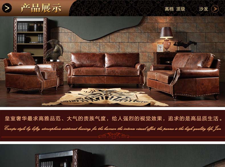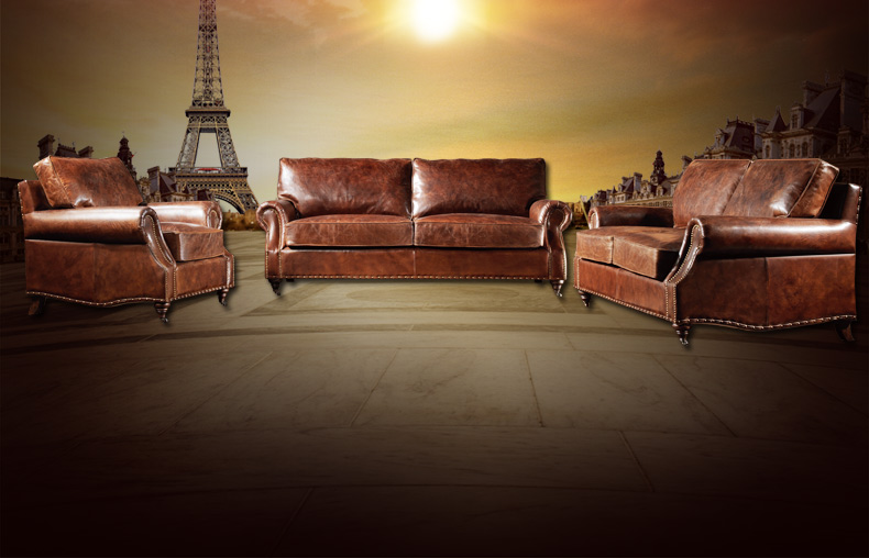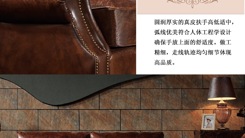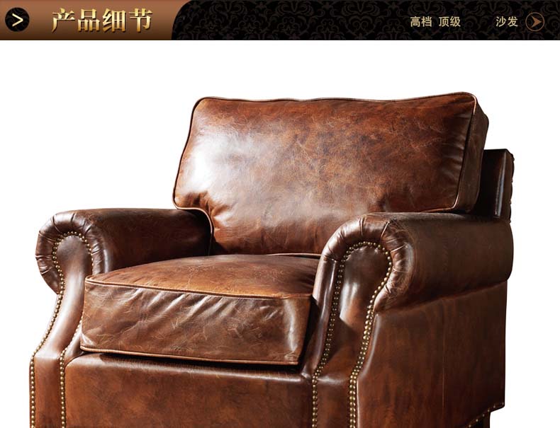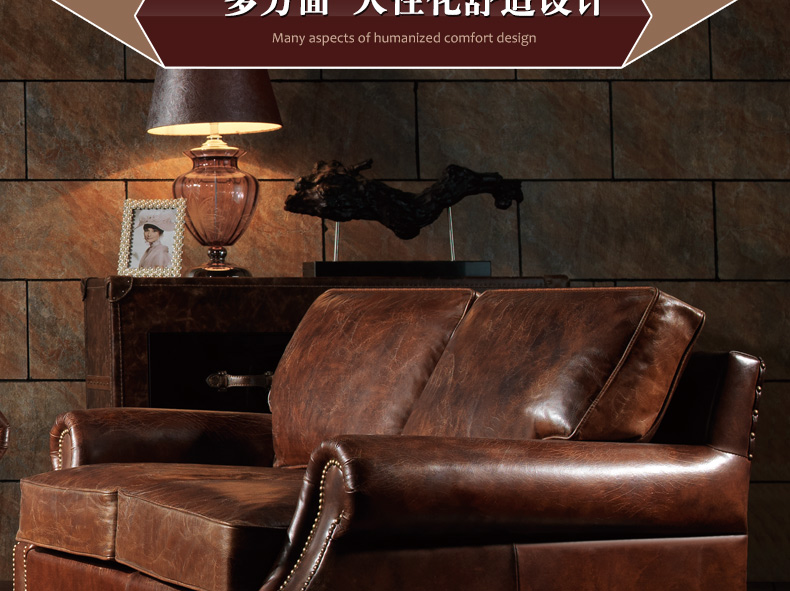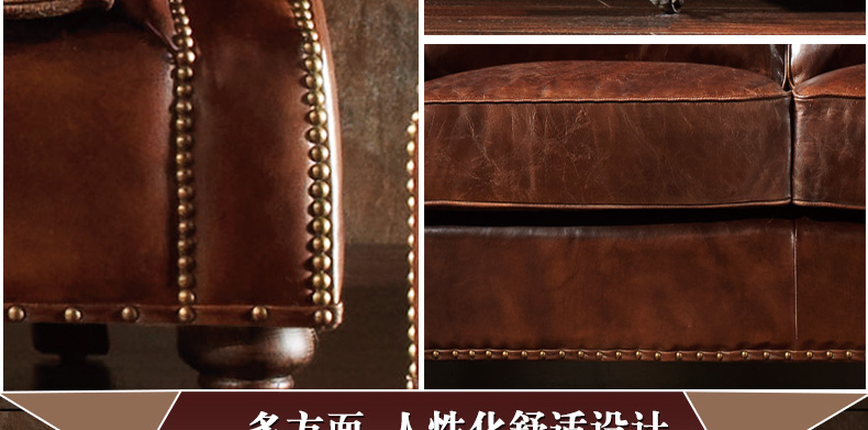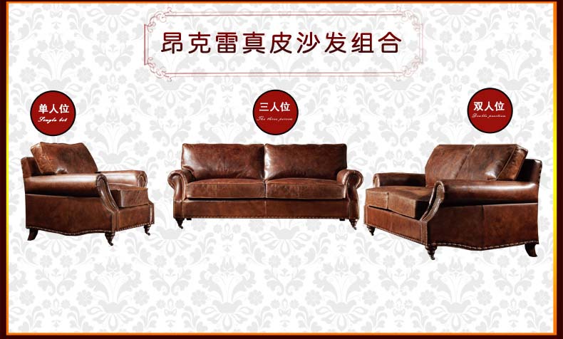 昂克雷 厂家直销美式新款皮沙发1.2.3人位组合沙发昂克雷A106
