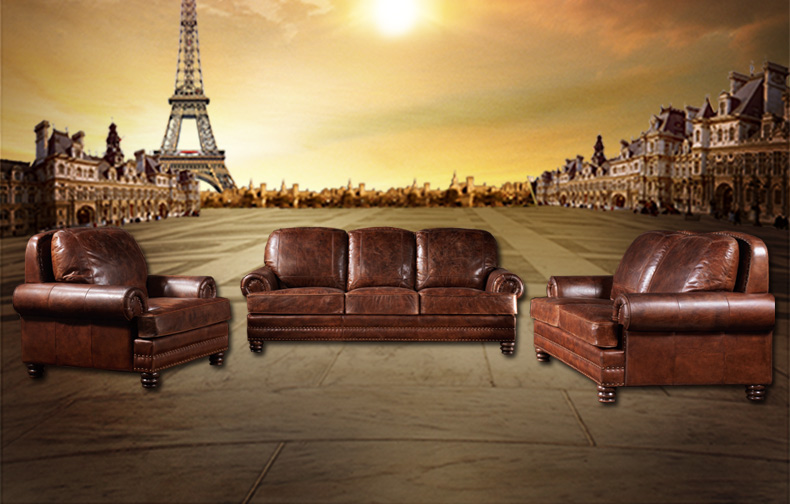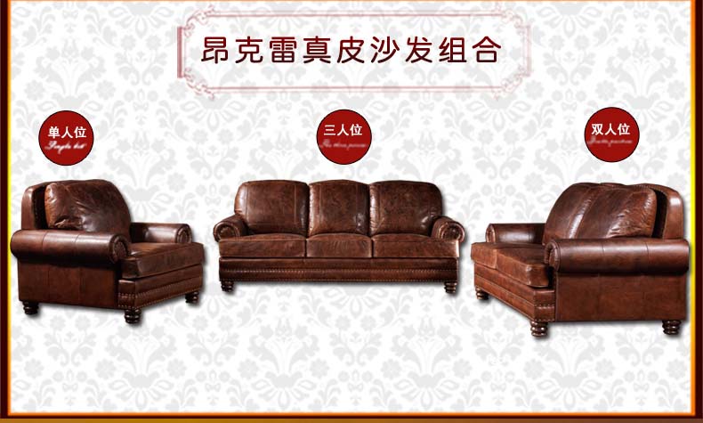 昂克雷 真皮沙发美式经典沙发厂家直销新款沙发组合头层牛皮沙发A109