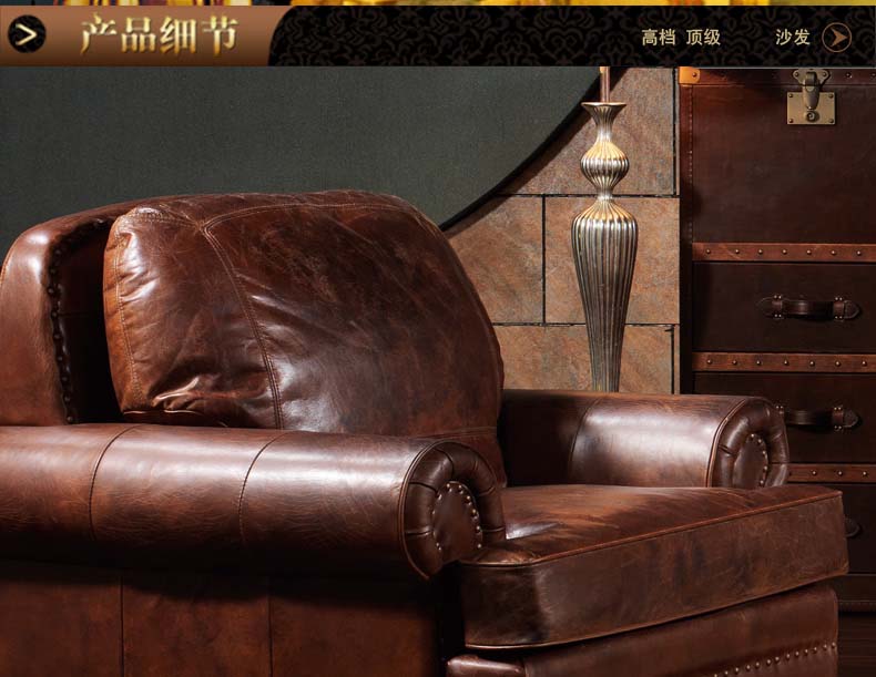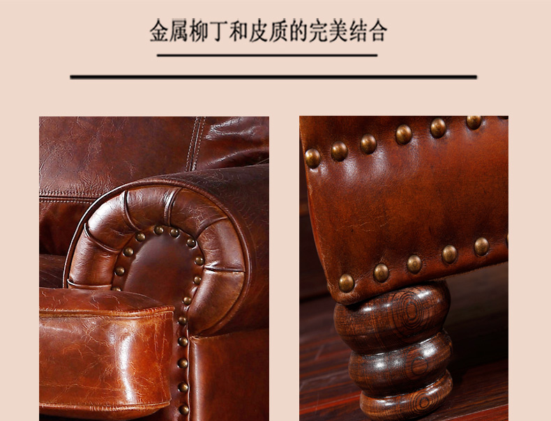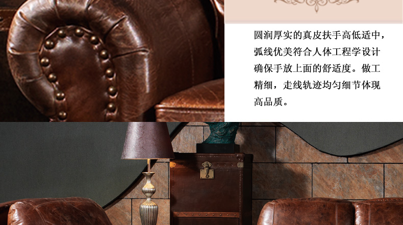 进口头层牛皮沙发美式新古典皮艺复古真皮沙发王者绝非偶然,完美的设计、精湛的工艺、厚道的选材、实惠的价格,独特流线元素,清晰美观,营造高贵优雅的生活!尊贵奢华 ,品质铸就精品,卓越艺术,新古典典范