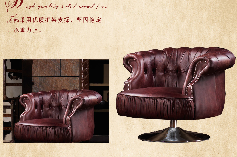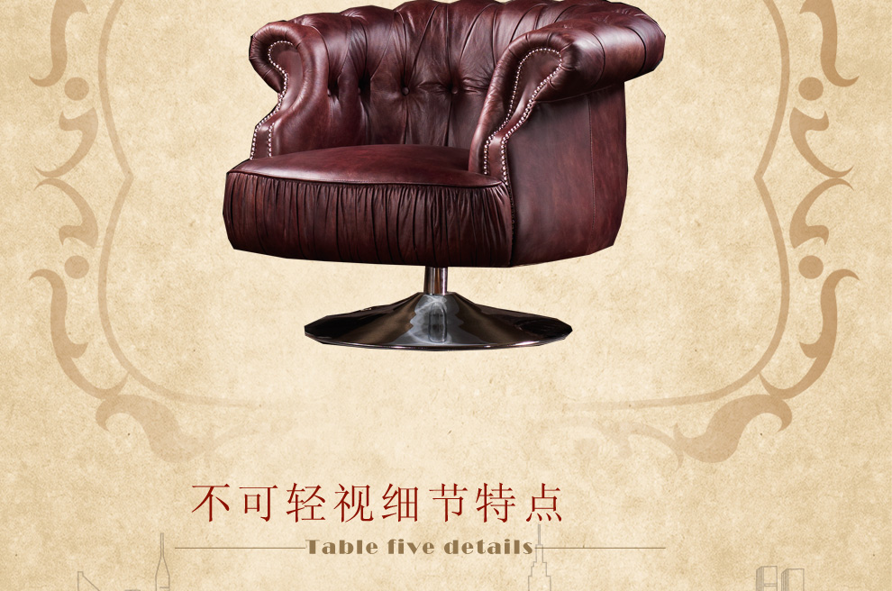 欧式复古书房客厅酒吧咖啡厅沙发进口头层牛皮单椅,实力见证品质 性价比超高!大件家具一用就是十年八年,环保健康耐用才是王道!好的品质好的服务!