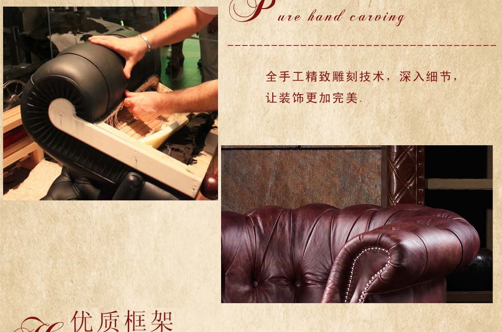 昂克雷 厂家直销美式新款沙发真皮沙发实木框架沙发休闲椅K609