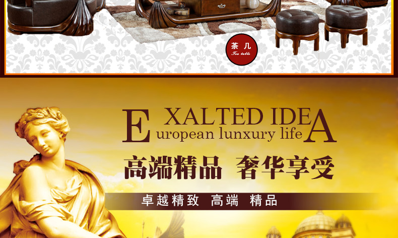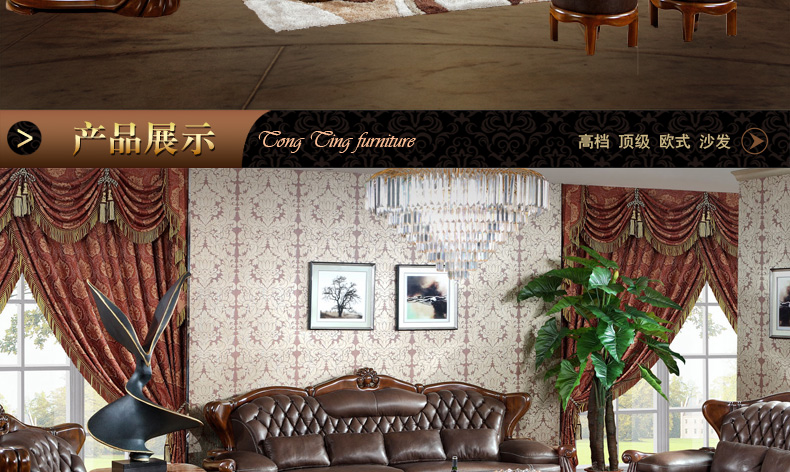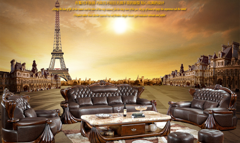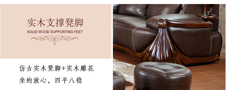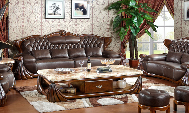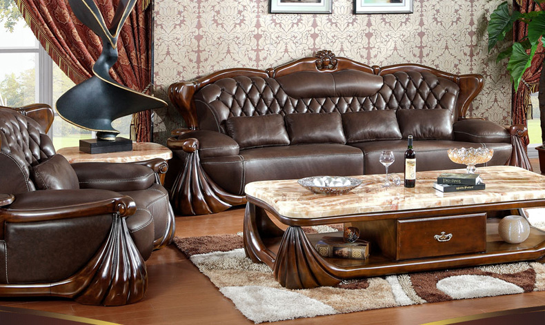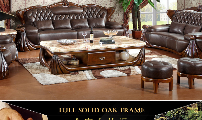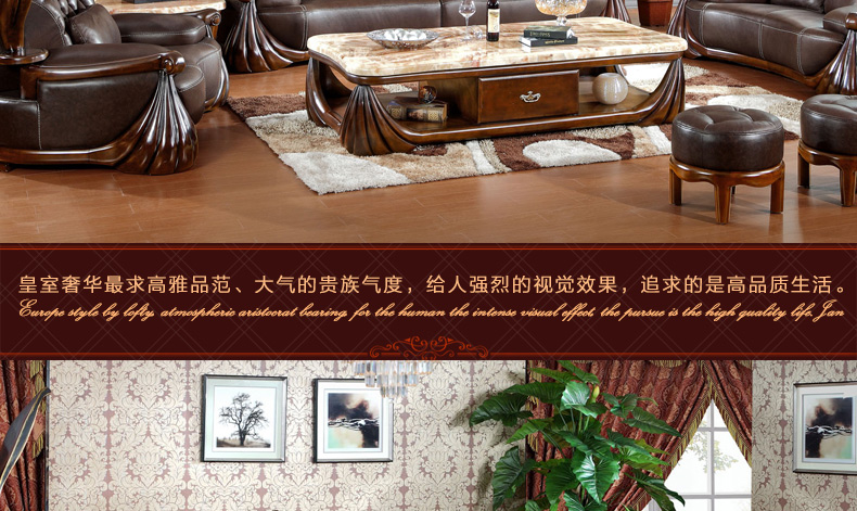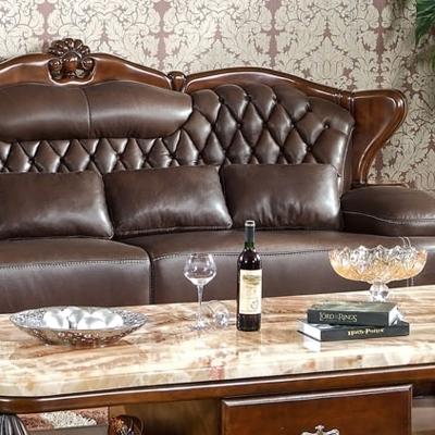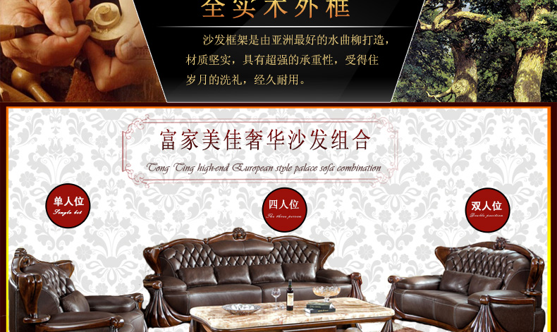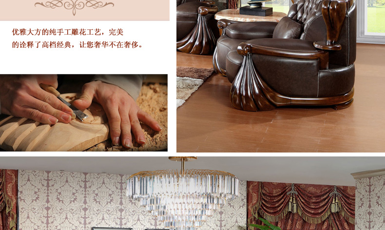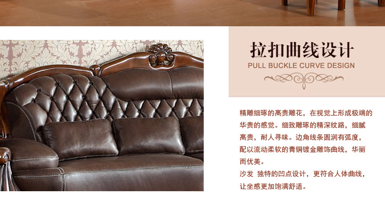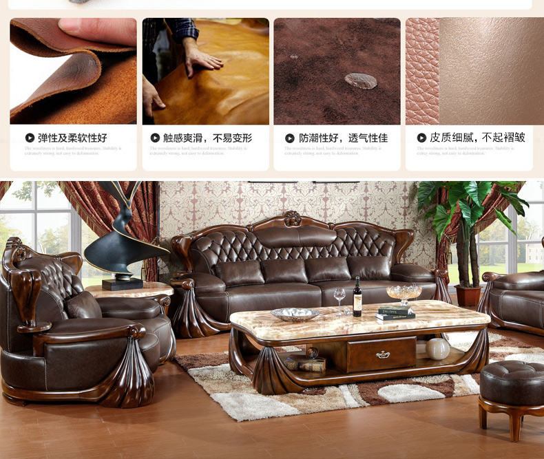 富家美佳系列欧式真皮沙发实木雕花住宅家具组合头层牛皮艺沙发B300