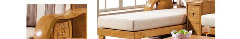 高端纯实木沙发、舒适健康,木质细密,纹理细腻,花纹精美。 精致大气的外观,让人一眼倾心。超宽实木扶手,舒适感极强。纯实木沙发框架。材质坚硬不易变形,经久耐用。