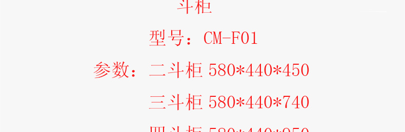 外围尺寸: 四斗柜:580*440*950mm 三斗柜:580*440*740mm 二斗柜:580*440*450mm