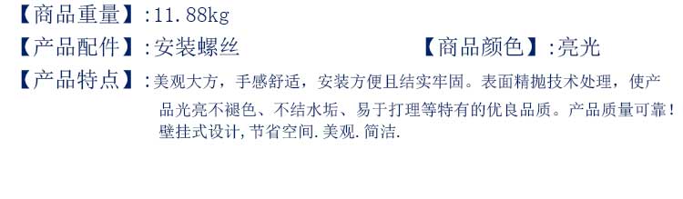 精选优质环保A级白钢,表面均匀抛光,多 层电镀有效防止表面酸 碱腐蚀,确保产品表面光泽亮丽,永久闪 亮 耐磨 结实耐用产品!