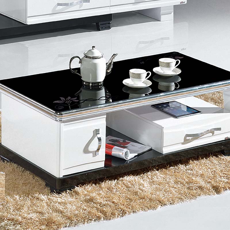 罗尔曼 板式时尚客厅茶几简约现代 方形中小户型钢化玻璃茶几106#