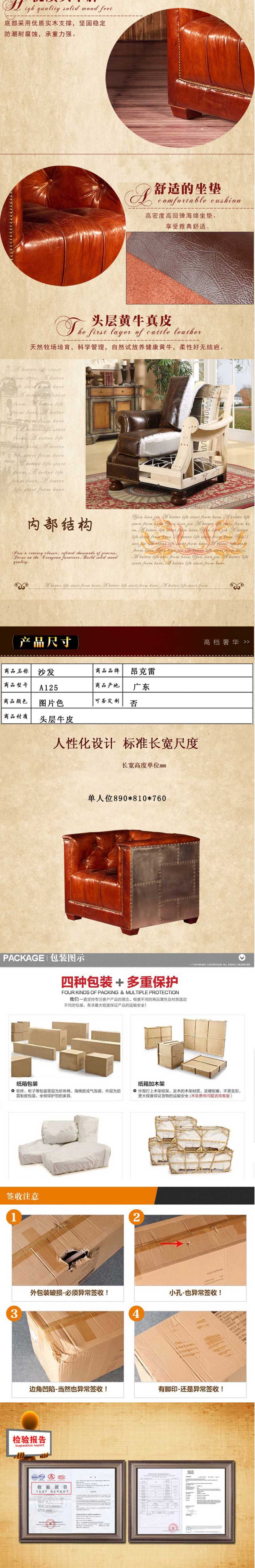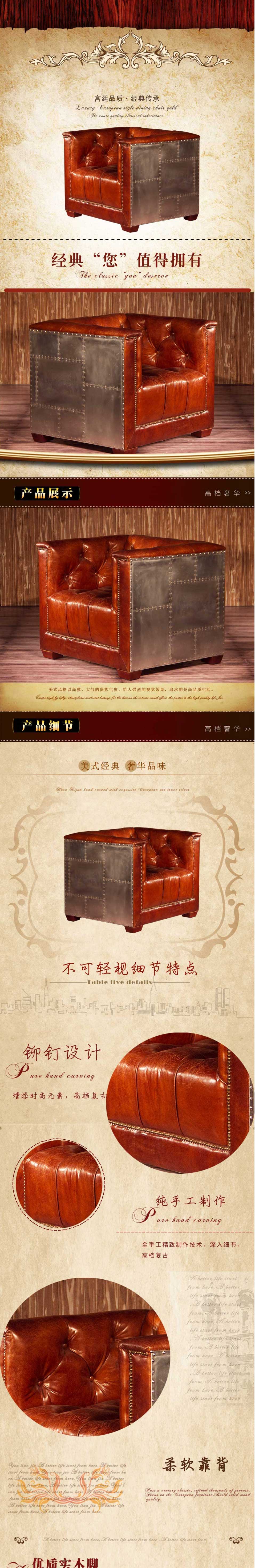 昂克雷沙发 美式怀旧家具 大小户型美式复古真皮铝皮沙发A125