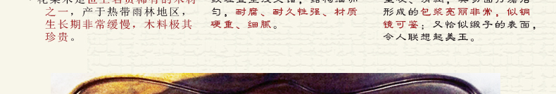 产品经科学烘干处理,注入我国古代传统色彩的雕刻工艺,设计新颖,做工精细,产品具有鲜明的个性和独特的品质,既有浓厚的民族色彩又有典雅的时代气息,全部产品采用红木工艺生产,吻合环保低碳生活的标准