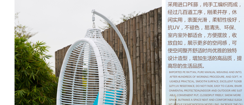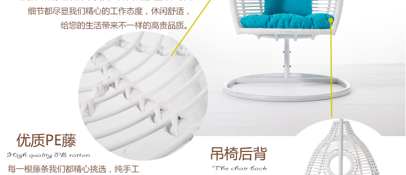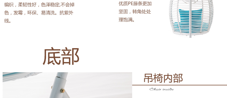 吊椅很漂亮,坐上去很放松很舒服!质量也好可以放心使用!