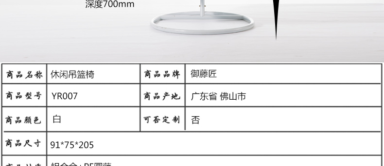 尺寸规格 91*75*205 产品材质 铝合金+PE圆藤