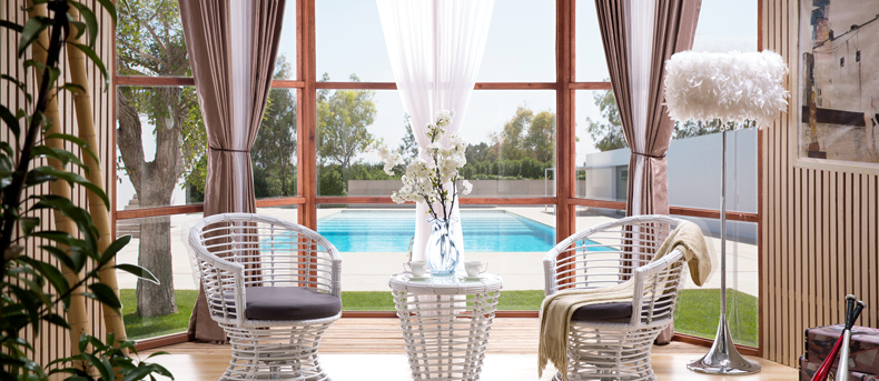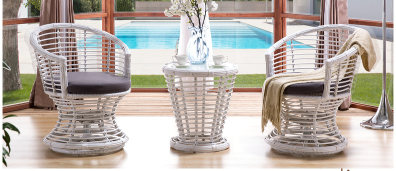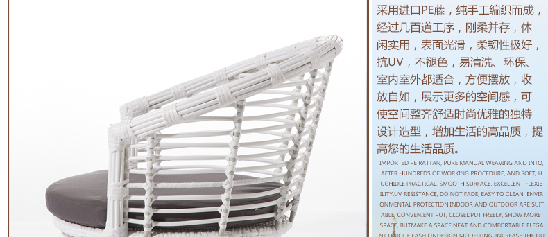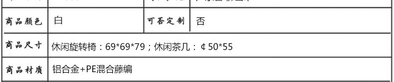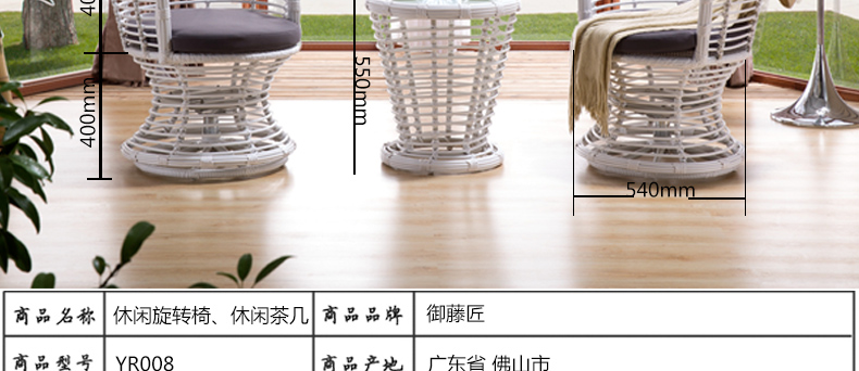 YR008休闲旋转椅 69*69*79 YR008休闲茶几 ¢50*55 材质:铝合金+PE混合藤编