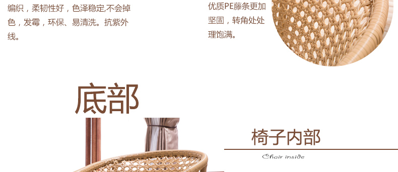 藤椅收到了,很结实,老公二百斤坐上去都没事,做工很精致,很喜欢,物流包装的挺严实
