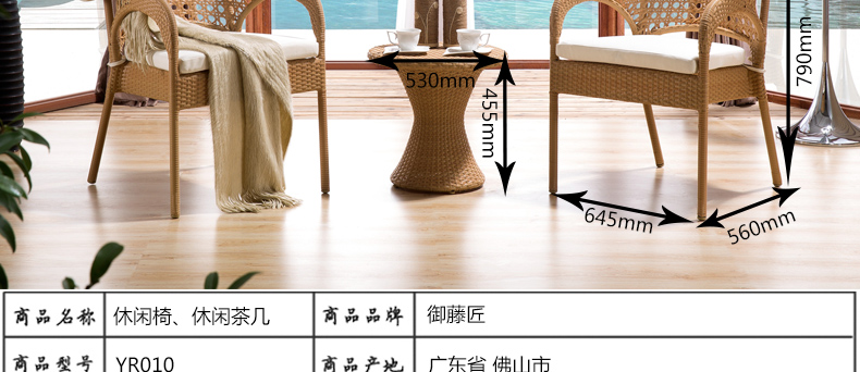 雅藤 御藤匠 现代时尚 户外休闲椅休闲茶几 户外藤椅藤几YR010