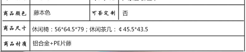 YR010休闲椅 56*64.5*79 YR010休闲茶几 ¢45.5*43.5 铝合金+7MM PE片藤