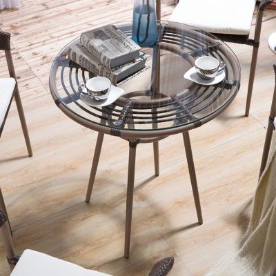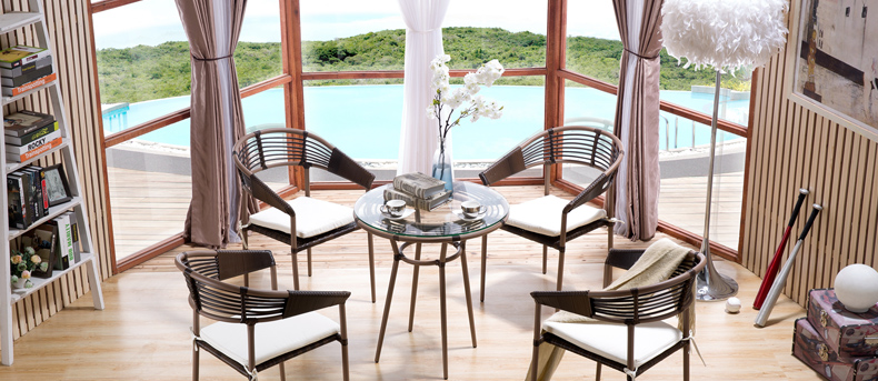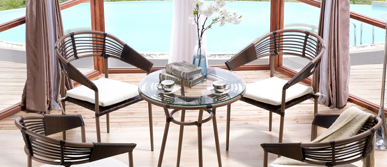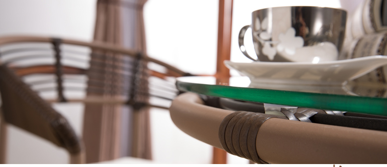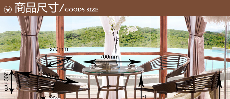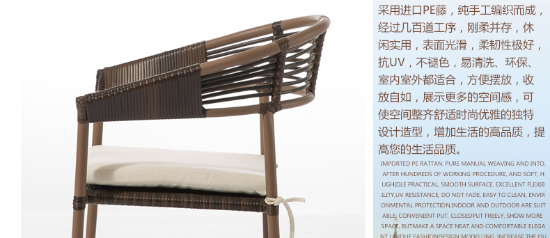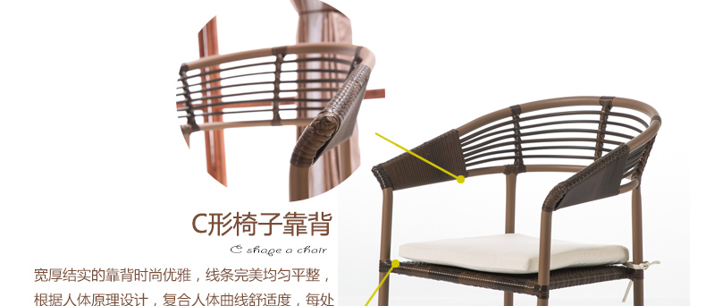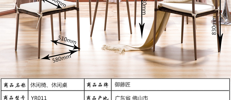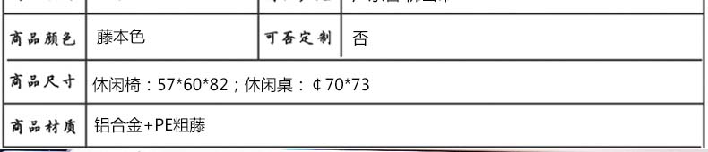 YR011休闲椅 57*60*82 YR011休闲桌 ¢70*73 铝合金+PE粗藤