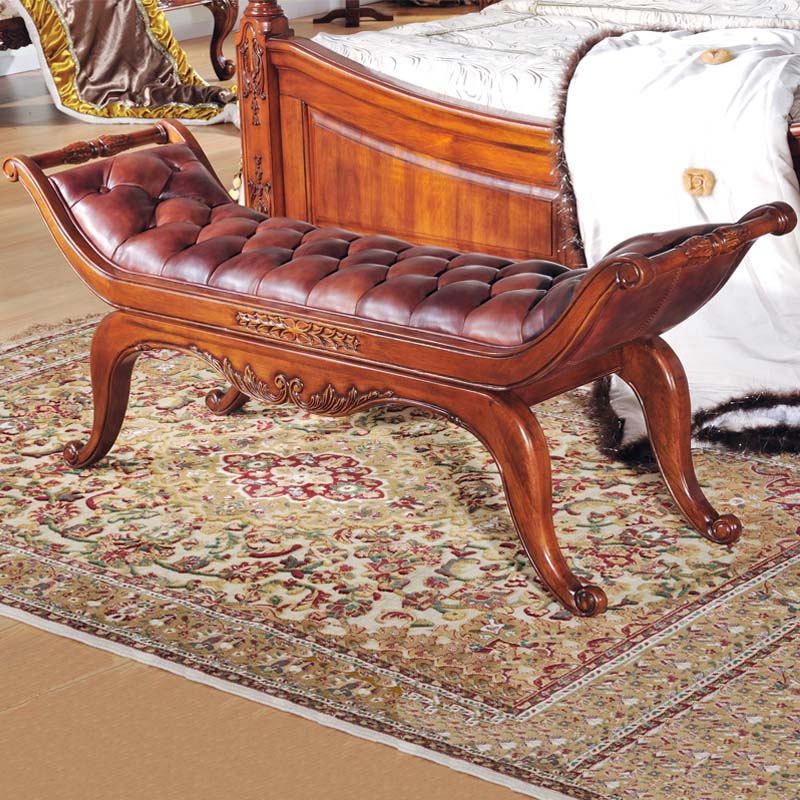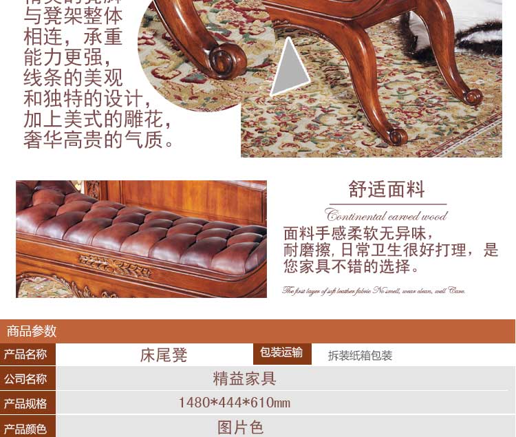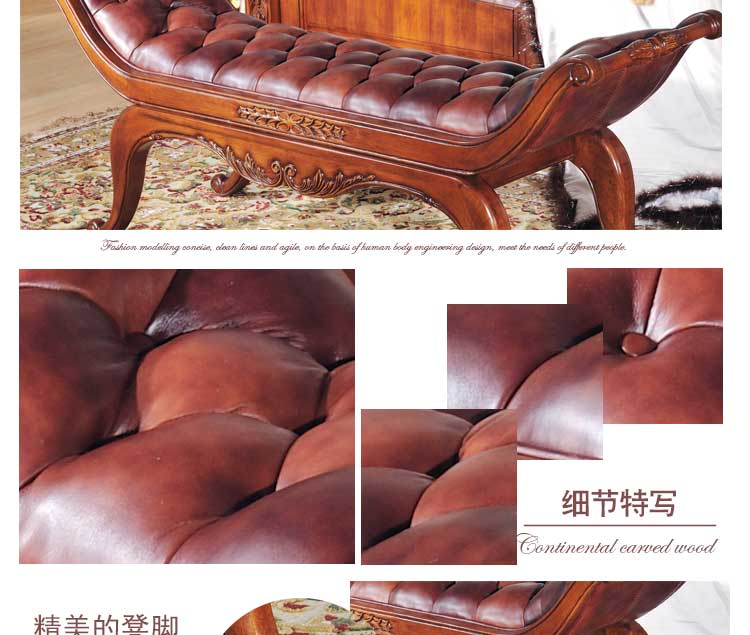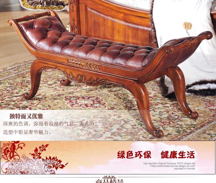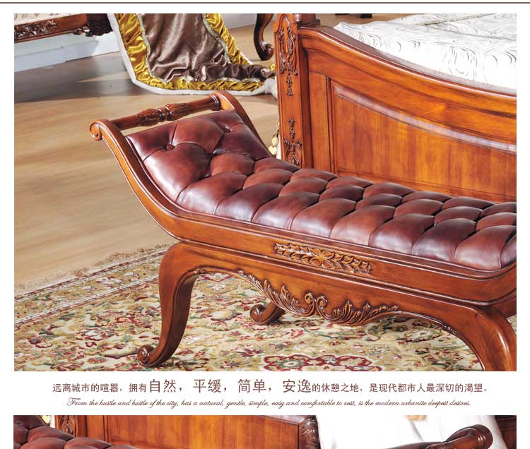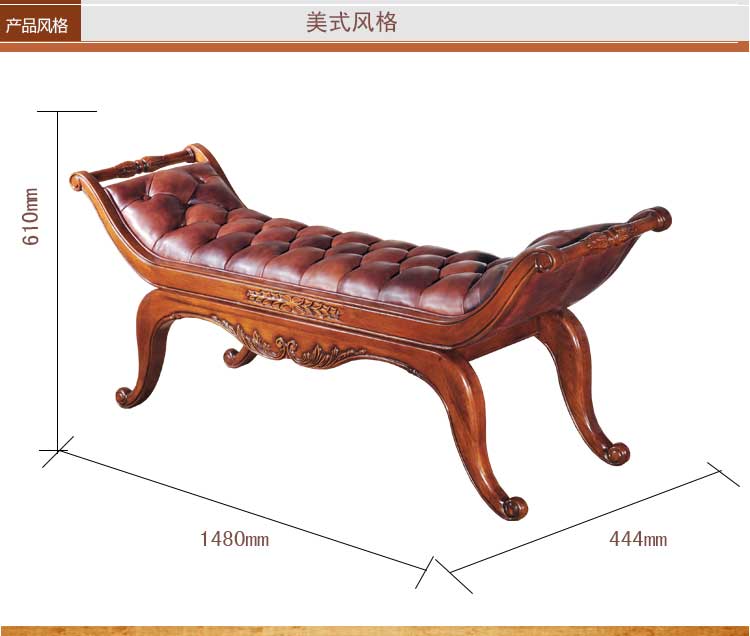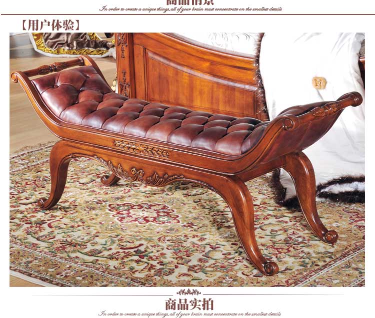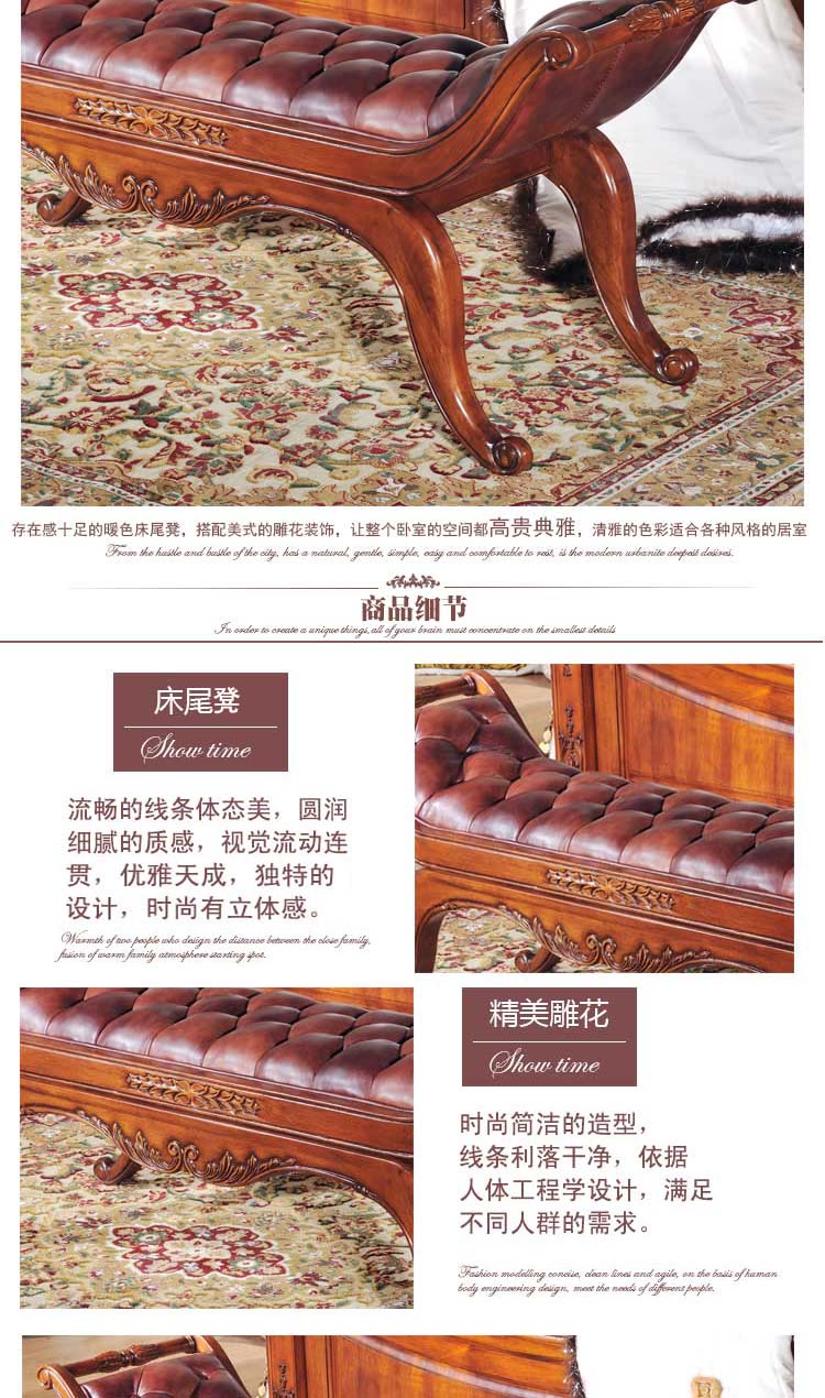 精益豪庭 美式床尾凳 沙发凳美容凳床边凳床榻换鞋凳 美式实木皮艺床尾 251床尾凳