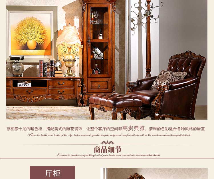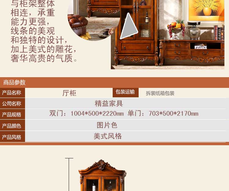 精益豪庭 美式实木门厅柜雕花间厅柜美式单、双门 厅柜 251厅柜