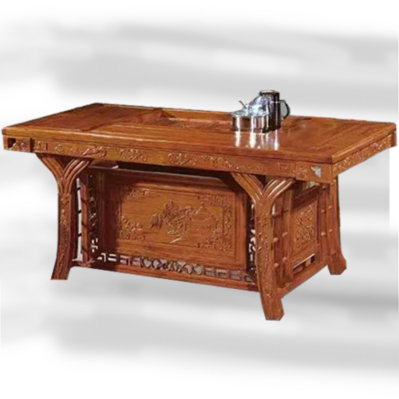 至盛千品 茶桌椅组合实木仿古中式茶台电磁炉小茶几多功能功夫泡茶桌榆木8811