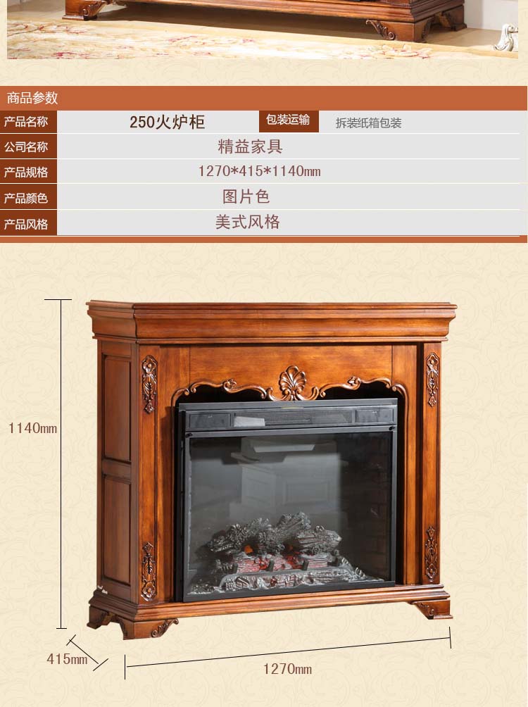 精益豪庭 美式壁炉装饰柜 实木壁炉架壁炉芯美式250火炉柜