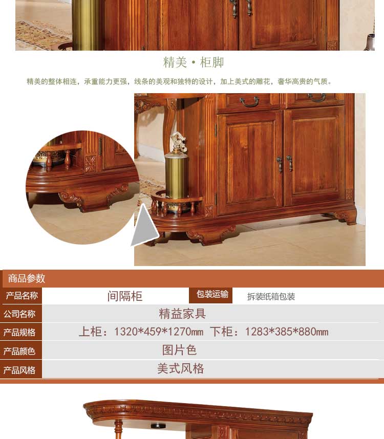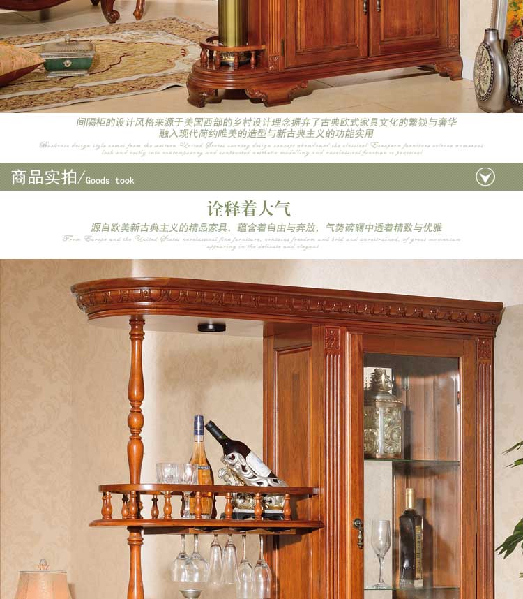 精益豪庭 美式实木酒柜 美式双面间厅柜玄关隔断柜餐边柜茶水柜220间厅柜