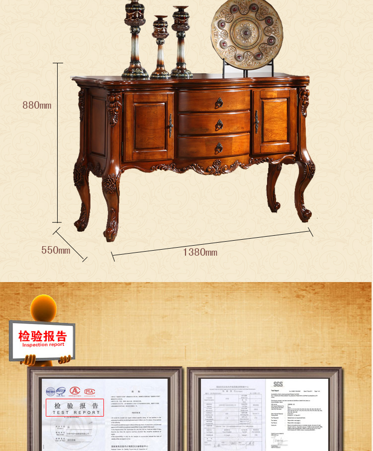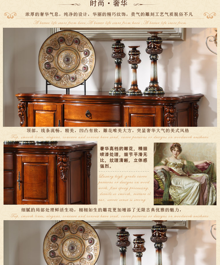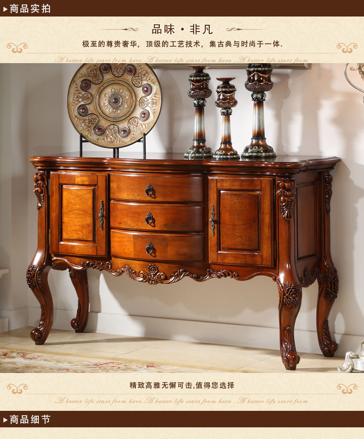 精益豪庭 美式餐边柜 实木玄关桌 餐厅厨房柜茶水柜碗碟柜酒柜680餐边柜