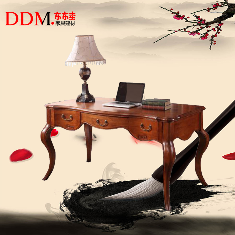 东东卖美式书桌简易书桌复古办公桌古典实木柏木书桌家用办公台