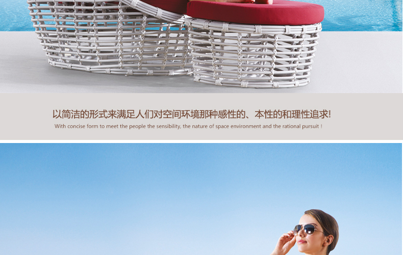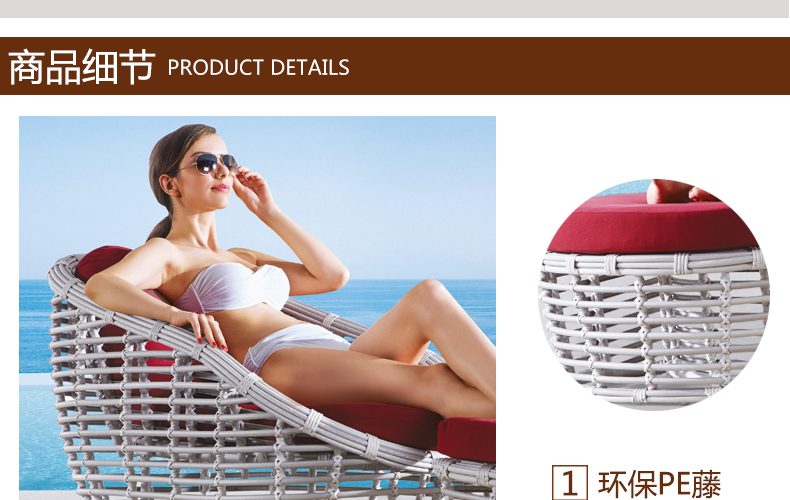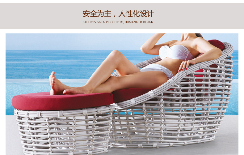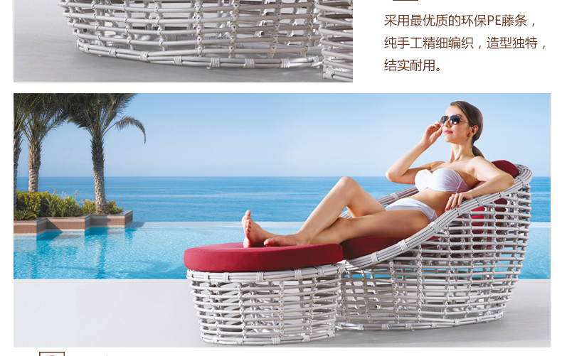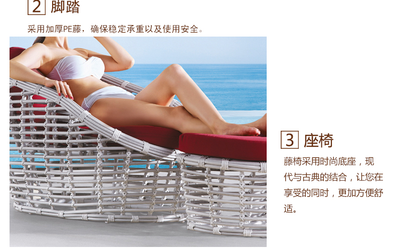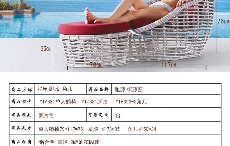 雅藤藤编户外躺椅阳光房沙发躺床庭院阳台床躺床藤椅子茶几三件套组合YTA631