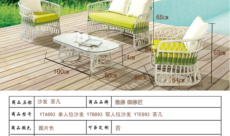 雅藤 藤沙发组合客厅藤沙发组合藤编沙发藤艺沙发藤编室内室外沙发YTA893