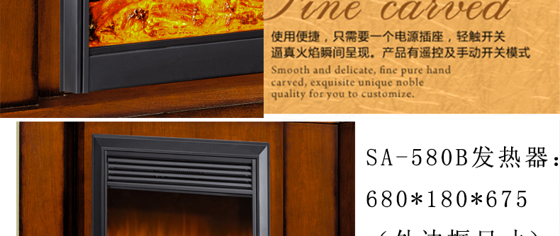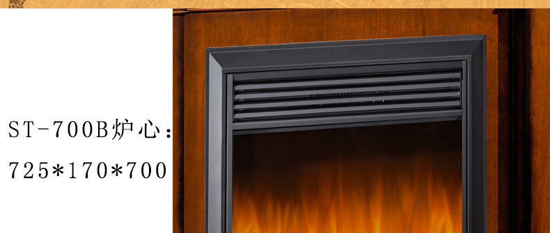 尺寸: 壁炉外框+装饰炉芯:1200*320*1100; ST-700B装饰炉芯:725*170*700; SA-580B发热器:680*180*675(外边框) 580*180*615(内边框)