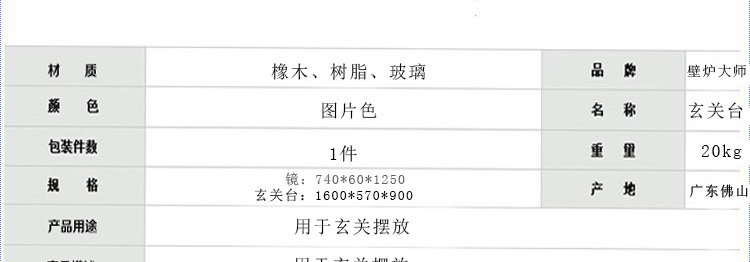 外围尺寸:镜:740*60*1250 玄关台:1600*570*900