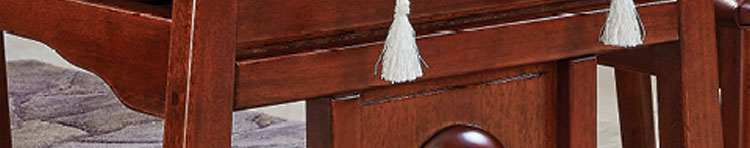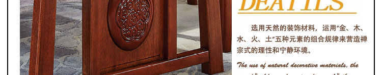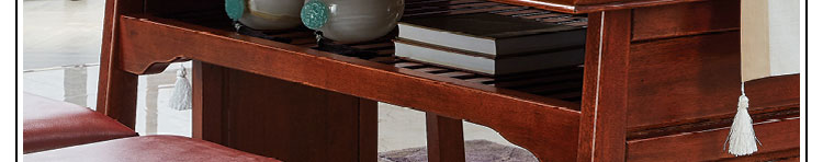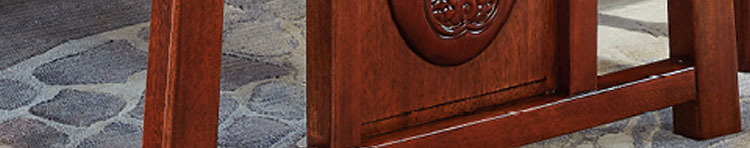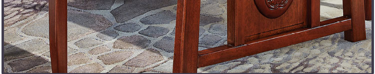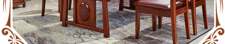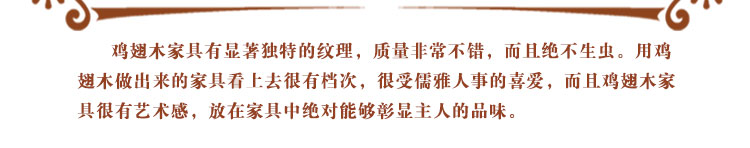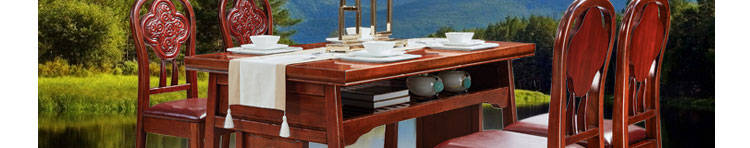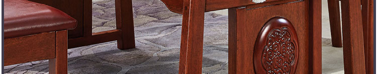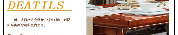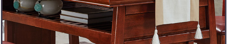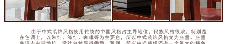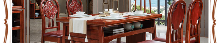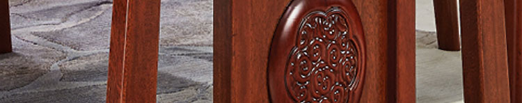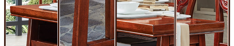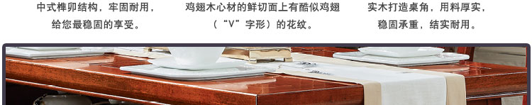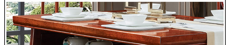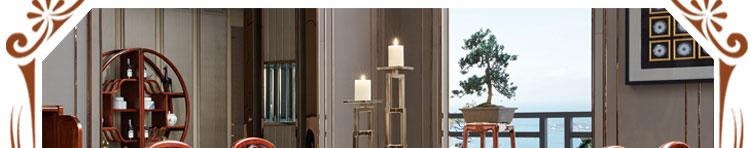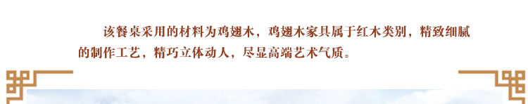 传统中式室内设计融合了庄重与优雅双重气质。“新中式”装饰风格的住宅中,空间装饰采用简洁、硬朗的直线条,有时还会采用具有西方工业设计色彩的板式家具,搭配中式风格来使用,直线装饰的使用不仅反映出现代人追求简单生活的居住要求,更迎合了中式家具追求内敛、质朴的设计风格,使“新中式”更加实用,该餐桌采用的材料为鸡翅木,鸡翅木家具属于红木类别,精致细腻的制作工艺,精巧立体动人,尽显高端艺术气质。